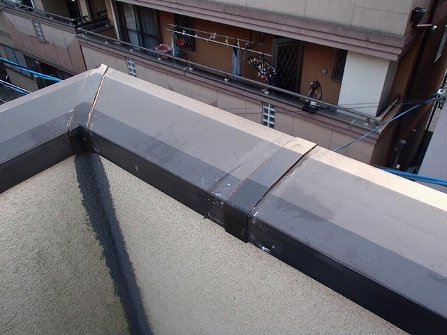 大阪市のT様邸の防水工事です。築15年の住宅で、ベランダの笠木の防水処理です。