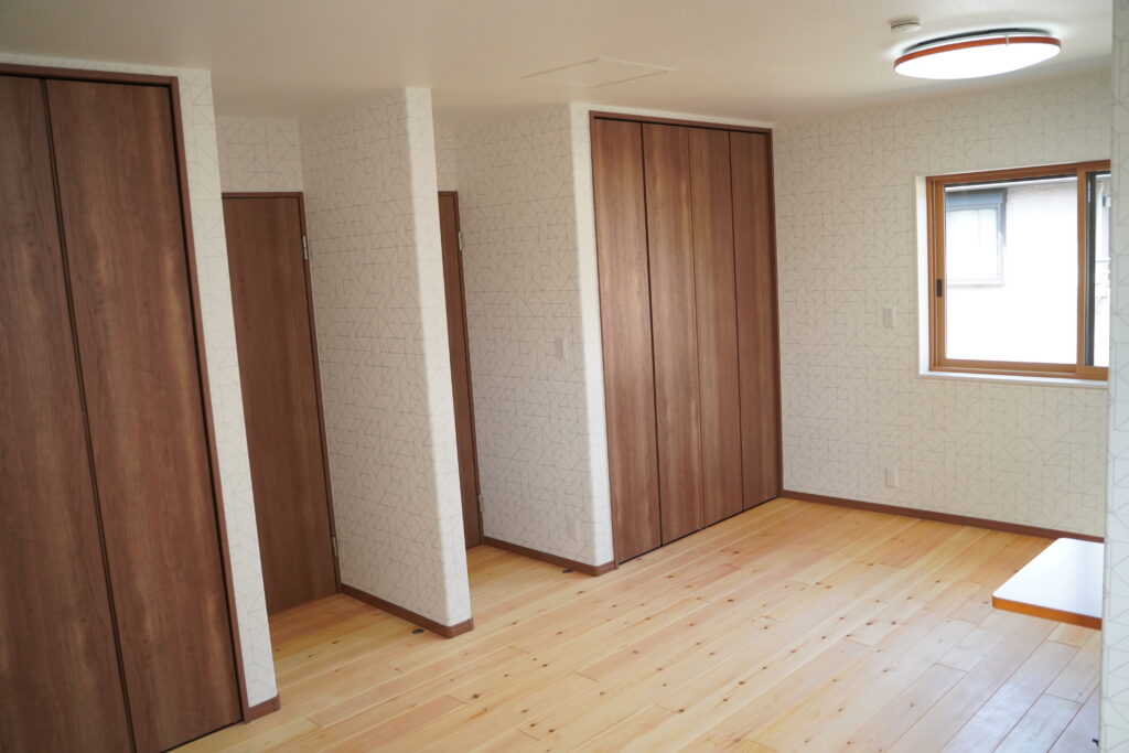 同居するお子様のために、2つに分かれていたお子様部屋を1つにまとめ広々と使えるようにしました。将来のことを考え再度分割できるようにしてあります。